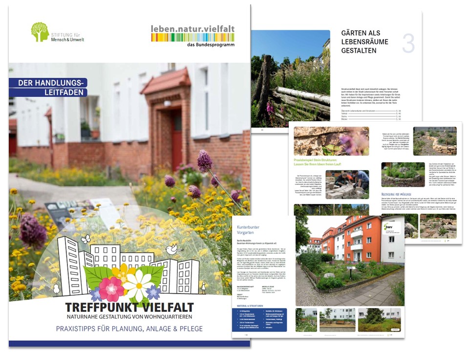 Auf 136 Seiten teilt die Stiftung für Mensch und Umwelt ihre Erfahrungen aus dem Modellprojekt „Treffpunkt Vielfalt – Naturnahe Anlage und Pflege von Wohnquartieren“, das vom Bundesamt für Naturschutz gefördert wurde. Auch die PikoParks unseres Projektpartners WILA Bonn werden hier vorgestellt.