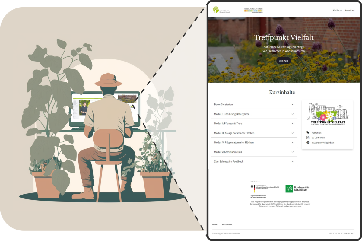 Das Projekt Treffpunkt Vielfalt - Naturnahe Gestaltung und Pflege von Freiflächen in Wohnquartieren macht urbane Wohnsiedlungen lebenswerter, indem es herkömmliche Grünflächen umgestaltet und aufwertet. Dies fördert die biologische Vielfalt in den Städten und bringt diese Vielfalt durch naturnahe Erlebnisräume direkt vor die Haustür der Bewohnerinnen und Bewohner. Für Wohnungsbauunternehmen und Gartendienstleistende ist dies eine große Chance, ihren Teil zur Erhaltung der biologischen Vielfalt beizutragen!