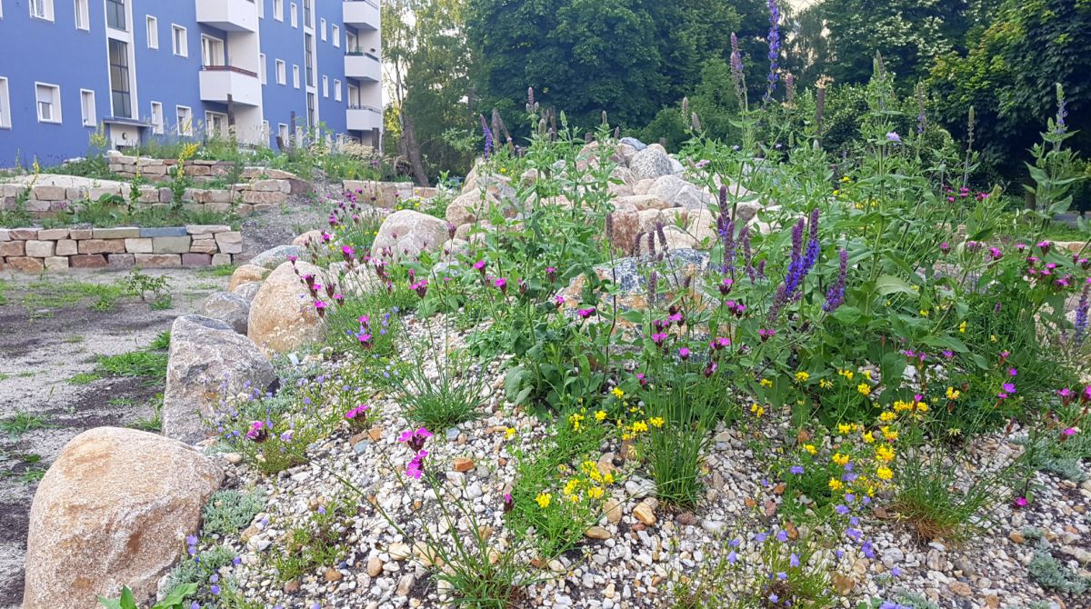 Das Projekt beschäftigt sich mit der naturnahen Umgestaltung von unterschiedlichen, naturfernen Grünflächen im Wohnungsbau. Durch die Kooperation der Berliner Stiftung für Mensch und Umwelt mit drei Berliner Wohnungsbaugenossenschaften und Naturgarten-Fachbetrieben entstanden bis 2021 fünf Modellflächen. Die Akzeptanz bei den Beteiligten wird ebenso untersucht wie die Auswirkungen auf Wildbienen und Tagfalter.